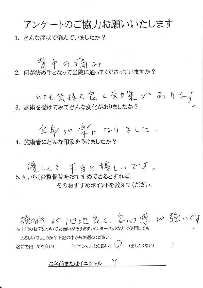 背中の痛みでお悩みのY.K様